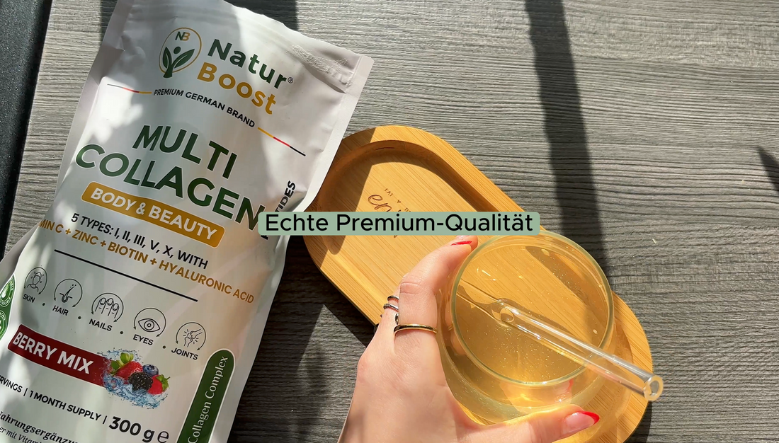 • 5 Kollagen-Typen Enthält fünf essenzielle Kollagen-Typen für eine ganzheitliche Unterstützung des Körpers.